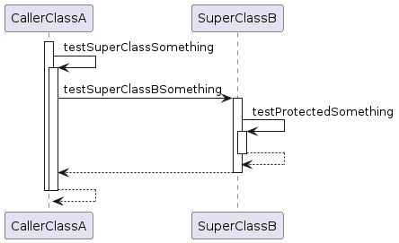 CallerClassA -> SuperClassB : testSuperClassBSomething
